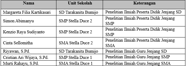 serta Ibu Dwi Apriani, S.Pd. Guru SMA Stella Duce 1 dan Ibu L. Yuni Nawangsih,
